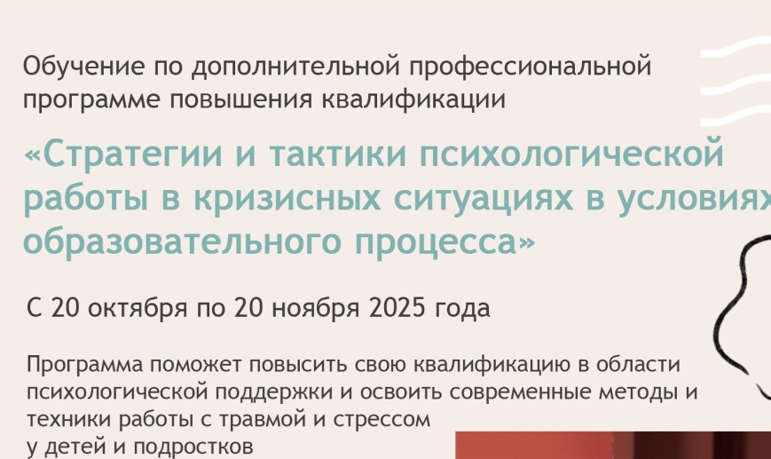Открываем набор на программу повышения квалификации по программе «Стратегии и тактики психологической работы в кризисных ситуациях в условиях образовательного процесса»!