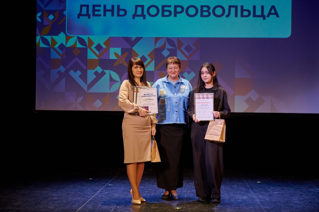 В Сургутской филармонии прошла традиционная торжественная церемония награждения активистов добровольческих движений в рамках празднования Международного дня волонтёра. Сургутян, которые делают мир лучше и добрее, чествовали представители муниципальных органов власти и городской общественности. Благодарственные грамоты Администрации города за вклад в развитие добровольчества в Сургуте и активную гражданскую позицию из рук Любови Александровны Урасиновой, возглавляющей Клуб серебряных волонтёров Сургута «Серебряный ЛИС», получили волонтёры Сургутского политеха. Это Регина Бадретдинова (гр. 409) и Дилдора Абдуллоева (гр. 411) из Студенческого совета общеобразовательного отделения, студенты группы 303 Сергей Бухта и Никита Кныш из объединения отделения строительства и транспорта «Волонтёры СПК» и Роман Япаров, Никита Попов и Иван Кукота из группы 216 энергетического отделения, активисты волонтёрского объединения «ДЕЛО». Педагоги колледжа, наставники этих коллективов: Людмила Алексеевна Мальцева, Татьяна Фардатовна Хаминич и Марина Викторовна Валеева – были также отмечены АНО «Молодёжный центр Югры» Департамента молодёжной политики, гражданских инициатив и внешних связей нашего региона за многолетний добросовестный труд, вклад в развитие волонтёрской деятельности в связи с 95-летием образования Ханты-Мансийского автономного округа – Югры.