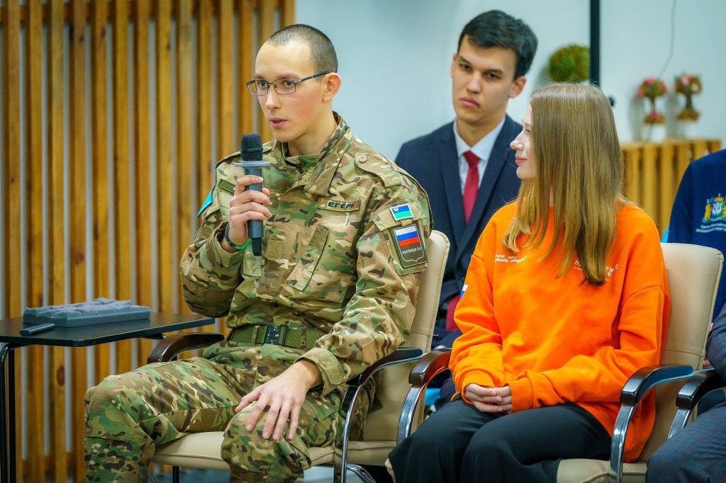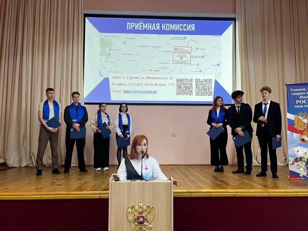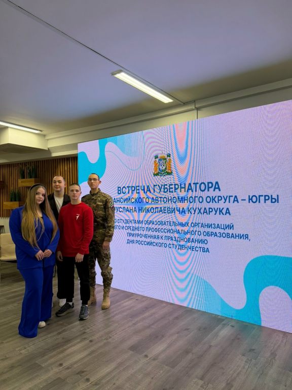Студенты Сургутского политеха приняли активное участие в городских и региональных мероприятиях, приуроченных к празднику. В состав делегации СПК на традиционной встрече Губернатора Югры Руслана Николаевича Кухарука с самыми успешными студентами года вошли трое студентов колледжа и куратор первичного отделения Движения Первых Алексей Алексеевич Серебренников. Студентка отделения сферы услуг СПК Сабрина Прокопьева (гр. 207), которая завоевала «бронзу» и «серебро» компетенции «Кондитерское дело» на финале Чемпионата профессионала, отвечала на вопросы журналистов, интересовавшихся подробностями её выступления на площадке. Егор Денисов (гр. 315) и Александр Соловьёв (гр. 201) представляли военно-патриотический клуб СПК «РОСИЧ», успешно дебютировавший в 2025 году во флагманском проекте «Движение Первых» «Зарница 2.0», войдя в ТОП-5. О том, как это было, рассказал аудитории Егор Денисов, ставший победителем в состязаниях военкоров.