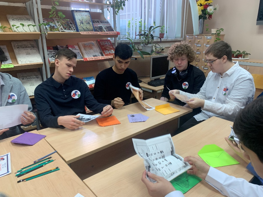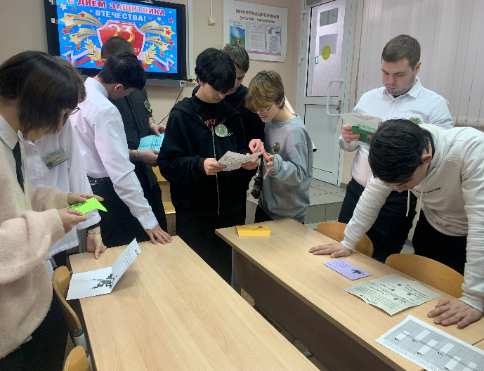 20 февраля в отделении Сферы услуг состоялся квест «Служим Отечеству», посвященный Дню защитника Отечества. В этот день библиотека превратилась в станцию «Интеллектуальная». Команды 6 групп приняли участие в интеллектуальной викторине на военную тематику, направленная на развитие логики, памяти и знаний о видах войск, технике и армейском быте. Привычный формат викторины был дополнен кроссвордом с вопросами на знание исторических событий и терминов. Все команды активно работали продемонстрировали свои отличные знания по теме. Все команды получили по 10 баллов.