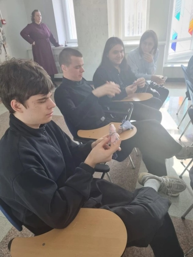 Ольга Васильевна Тарасова, главный библиотекарь зала краеведения и библиографии, провела для студентов информационный час «Легенда о вороне», познакомила ребят с культурой коренных жителей Севера и традициями празднования Вороньего дня. Ворона - главный символ праздника Вурна Хатл, который, по поверьям, несёт весну и жизнь. Изготовление куклы «Ворона Глаша» стало яркой кульминацией мероприятия.