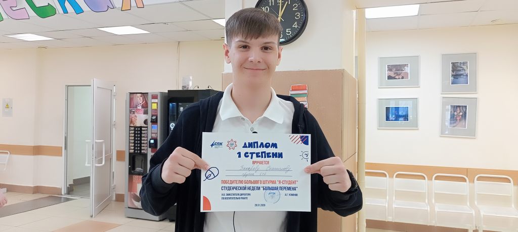 Самые активные и творческие студенты СПК отметили праздник «На одной студенческой волне» в Сургутском государственном университете, где в Татьянин день чествовали лучших. В частности, награду за вклад в развитие молодёжной политики Сургута от Российского Союза Молодёжи вручили и обладательницам титула «Студент года – 2025» СПК Ксении Супрыкиной (гр. 312), Ульяне Суторминой (гр. 310) и Аделе Кузахметовой (гр. 218) на «Вечере студенчества Югры», собравшем всех звёзд студенческой молодёжи региона.