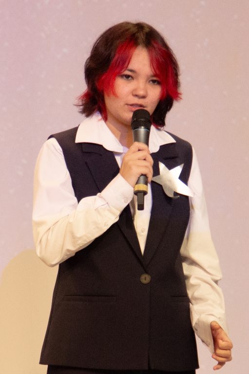 Дипломов в специальных номинациях были удостоены ещё три участника конкурса «Студенческий лидер». Награду «Самое доброе сердце» получила студентка отделения сферы услуг Дарья Альчикова (гр. 307), которая вышла на сцену с симпатичным маскотом своего проекта в руках: цифровой навигатор Вася может помочь пожилым людям освоить современные гаджеты (руководитель В.М.Климов). Студентка энергетического отделения Дарья Визнер (гр. 319) была отмечена «За профессиональный подход», в том числе в разработке челлендж-трекера «Здоровый студент» под руководством А.А.Серебренникова: проект призван способствовать продвижению спорта и здорового образа жизни в студенческой среде. Под руководством Т.Ф.Имаевой выступили на конкурсе представители студенческого актива отделения строительства и транспорта: Анатолий Янковский (гр. 405) с проектом «Волонтёры без границ» и Валерия Лебедь (гр. 303) с идеей проведения цикла перфомансов в рамках своего проекта «Это – моё виденье», – стали обладателями наград в номинациях «Активная позиция» и «Творческий импульс».