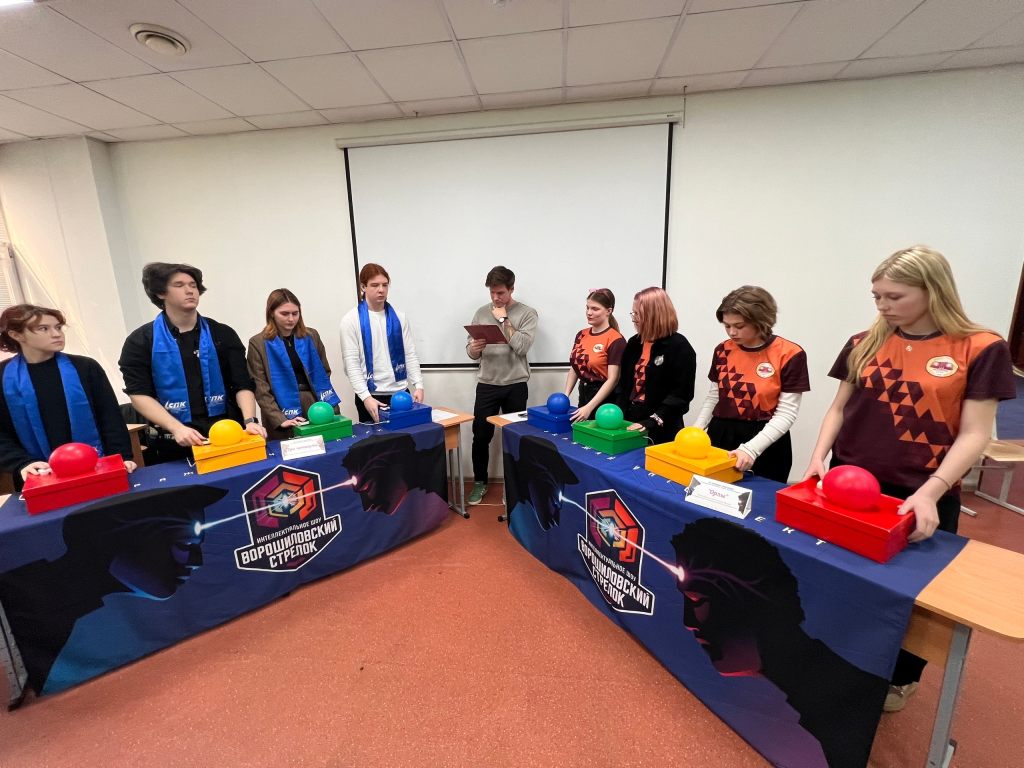 - Для нас это было очень необычно, мы впервые столкнулись с игрой, в которой нет времени для обсуждения вопроса внутри команды, и вся ответственность принятия решения лежит на конкретном игроке, – поясняет руководитель интеллектуального клуба СПК «Филист» Екатерина Сергеевна Чертухина. – При этом игра идёт в очень быстром темпе. Здесь важна не только эрудиция, но и умение строить тактику, учитывая нюансы построения четвёрки, выходящей на игровое поле. Играют две команды, у каждого игрока свой цвет. Правильно отвечаешь на вопрос – противник одного с тобой цвета уходит с поля. Отвечаешь неправильно – покидаешь стол ты: сам себя «выбил». Поэтому и название – «Ворошиловский стрелок». Самое интересное, что на этот раз мы вполне могли победить. Но финальное противостояние началось сразу после нашей успешной игры в полуфинале, и ребята, не успев отдышаться, в победной эйфории ринулись жать кнопку, не успевая усомниться в своих ответах. Гораздо более мудрой тактики придерживались наши оппоненты: «Студенческий экспресс» Рыбинского профессионально-педагогического колледжа два года подряд становился «серебряным» призёром, и на этот раз явно прибыл за «золотом». Эти ребята не спешили, они точно знали, как грамотно «отстреляться»…