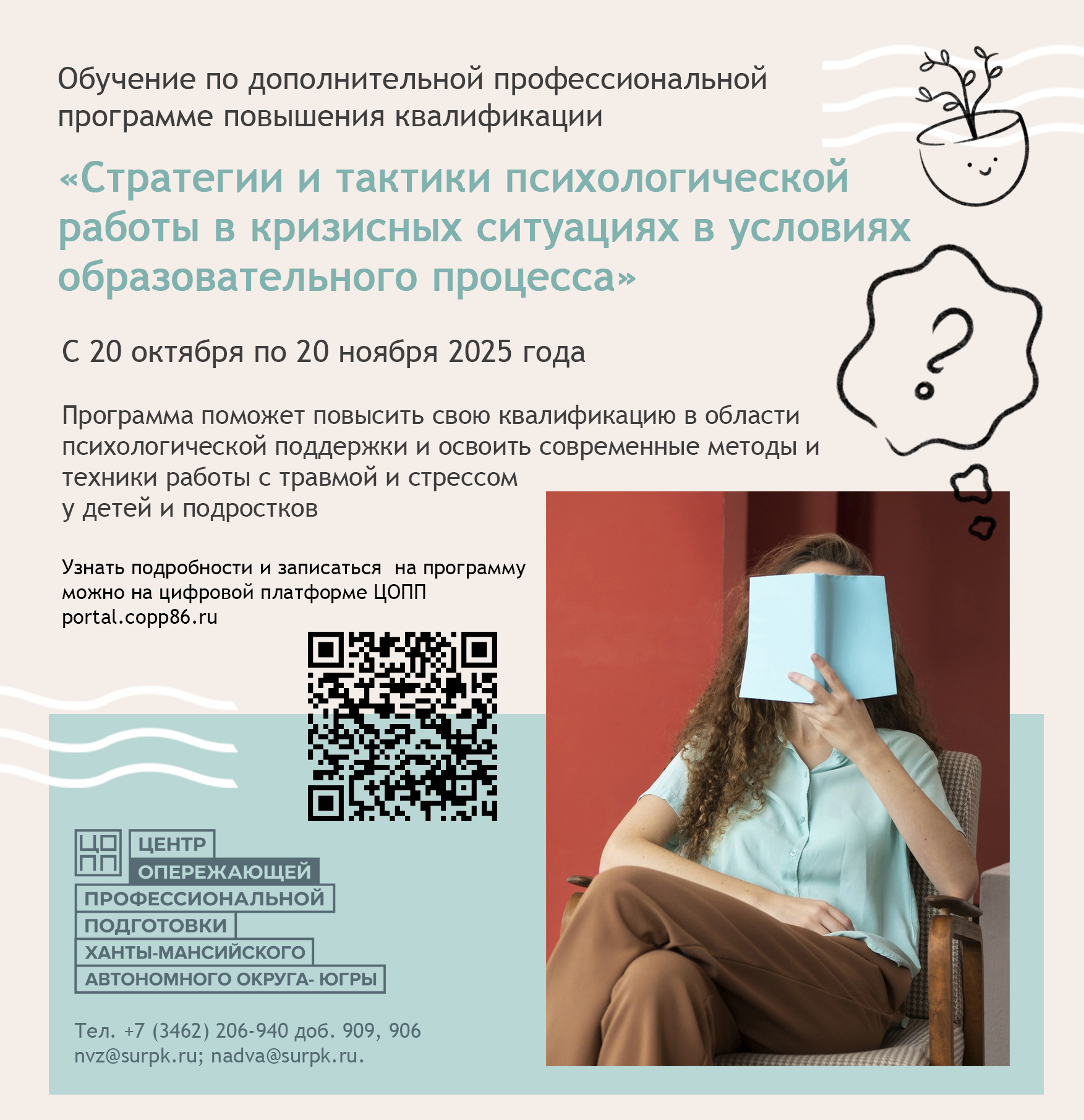 Открываем набор на программу повышения квалификации по программе «Стратегии и тактики психологической работы в кризисных ситуациях в условиях образовательного процесса»!