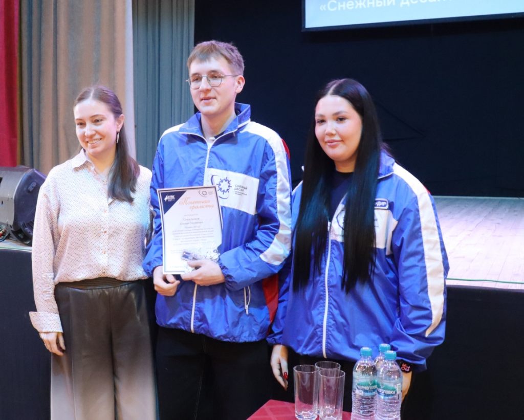 О том, насколько насыщенной интересными событиями и встречами получилась поездка «Стерха» в посёлки Ханты-Мансийского района, рассказали бойцы отряда аудитории. Ребята помогали местным жителям не только с уборкой снега во дворах: кололи дрова, плели маскировочные сети и изготавливали блиндажные свечи для бойцов специальной военной операции, проводили для школьников мастер-классы и профориентационные встречи, выступали с концертами. Акция «Снежного десанта» вместила в себя многолетние отечественные традиции, от тимуровского движения до советских стройотрядов и добровольческой деятельности. Поблагодарив за труд, с успешным завершением благородной миссии «снежных десантников» поздравили почётные гости: директор Сургутского политехнического колледжа Вадим Николаевич Шутов, проректор Сургутского государственного педагогического университета по воспитательной работе и молодёжной политике Любовь Анатольевна Кириленко, педагог дополнительного образования Центра молодёжных инициатив СурГПУ Даниел Алмазович Нуркулов. Вместе с командиром «Стерха» Миланой Якименко (СурГУ) и комиссаром отряда Анастасией Зайковой (СПК, гр. 212) они вручили награды самым активным бойцам отряда. В их числе студенты Сургутского политеха: Никита Кныш (гр. 303), Тимур Самигуллин (гр. 303) и Андрей Харченко (гр. 303), а Степан Севастьянов (гр. 313) был признан лучшим бойцом по итогам трудовой вахты «Стерха».